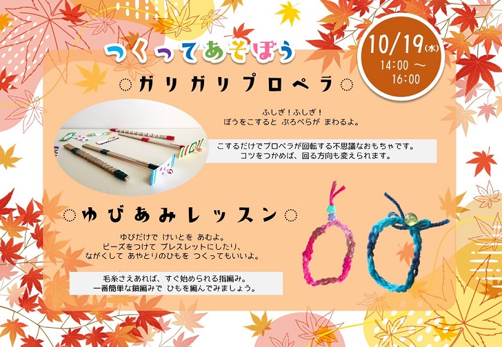つくってあそべる人気の工作!第1水曜、第3水曜日に開催!
