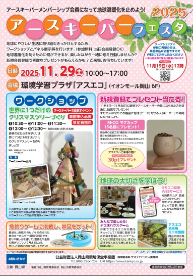 開催場所環境学習プラザ「アスエコ」(岡山市北区下石井1-2-1 イオンモール岡山6階)