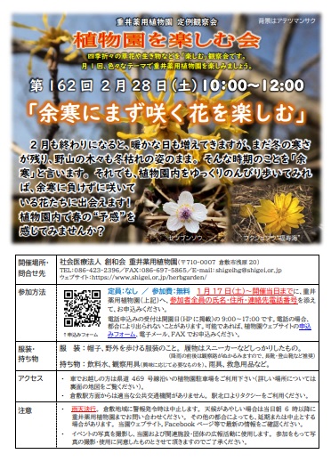 定例観察会「植物園を楽しむ会」162余寒にまず咲く花を楽しむ