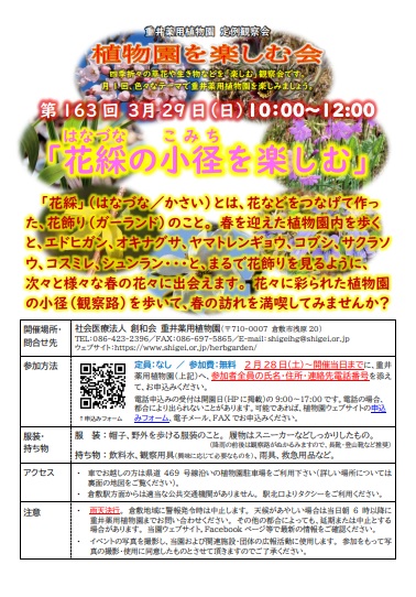 問合せ086-423-2396(重井薬用植物園)