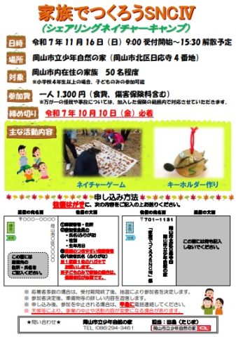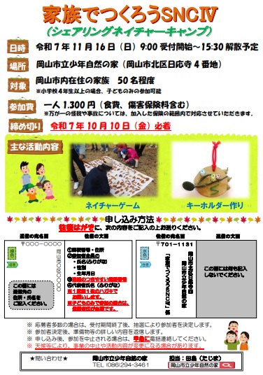 開催場所岡山市立少年自然の家(岡山市北区日応寺4番地)