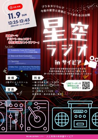問合せ086-251-9752(人と科学の末来館サイピア)