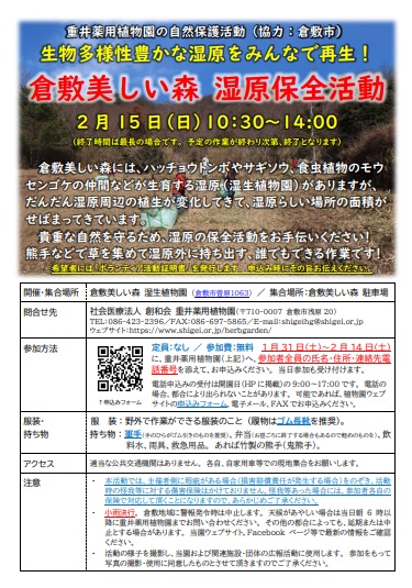 植物園の自然保護活動 倉敷美しい森 湿原保全活動