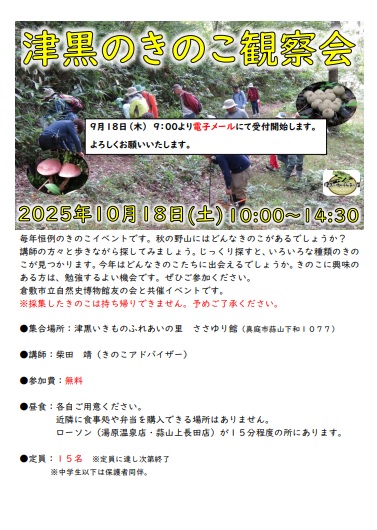 問合せ0867-67-7011(津黒いきものふれあいの里)