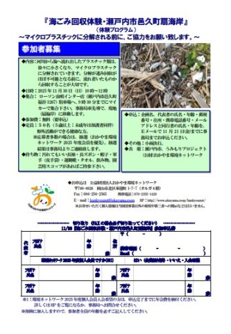 問合せ070-2355-1420((公財)おかやま環境ネットワーク)