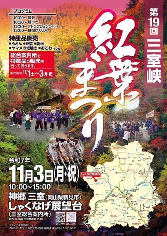 11月3日(月・祝)に、三室総合案内所周辺にて「第19回三室峡紅葉まつり」が開催されます!