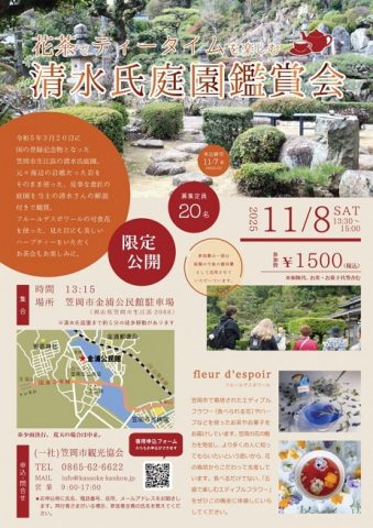 花茶でティータイムを楽しむ清水氏庭園鑑賞会