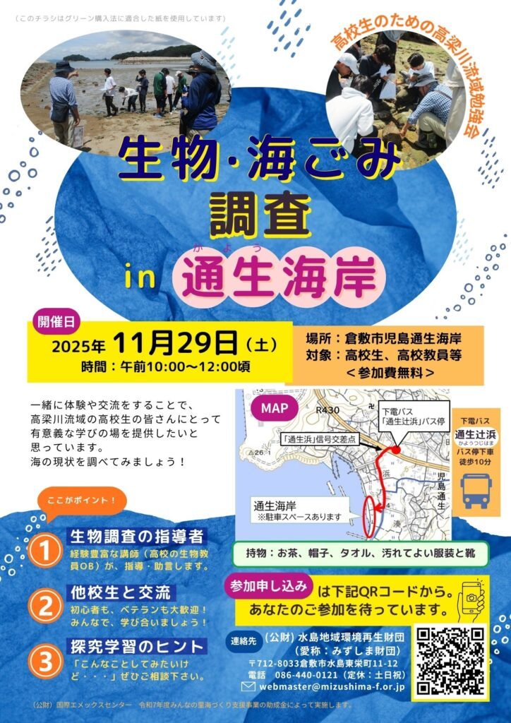 継続して実施している海岸で、生き物と海ごみの調査をします。